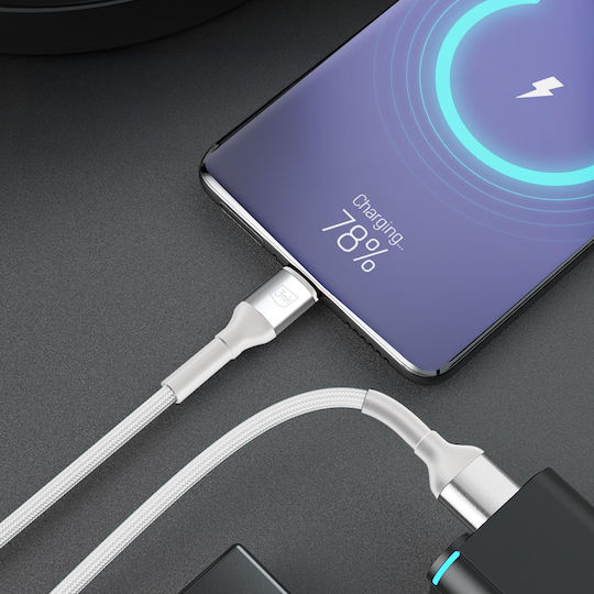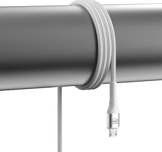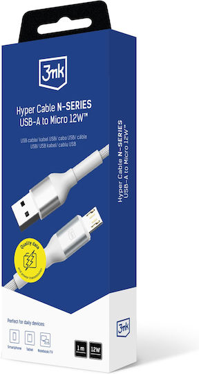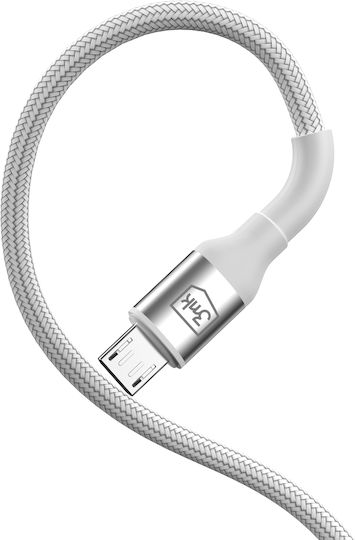 3MK LED / Braided USB 2.0 to micro USB Cable Λευκό 1m 1τμχ
