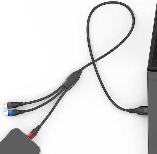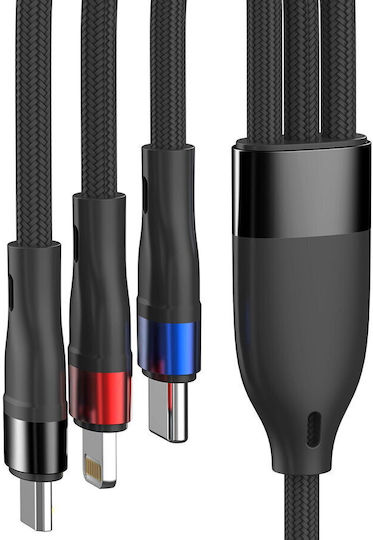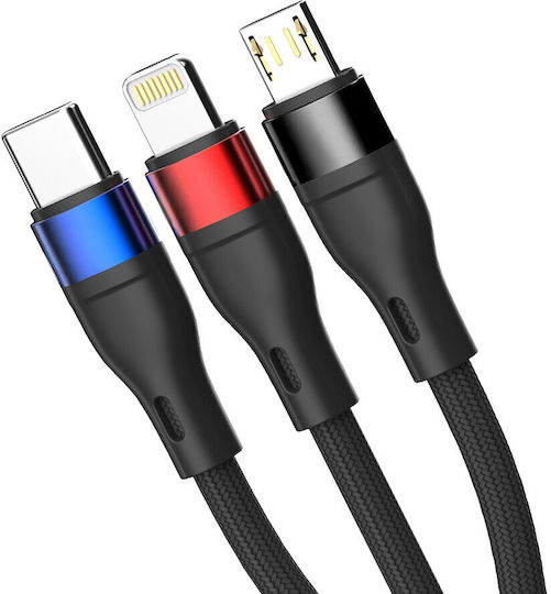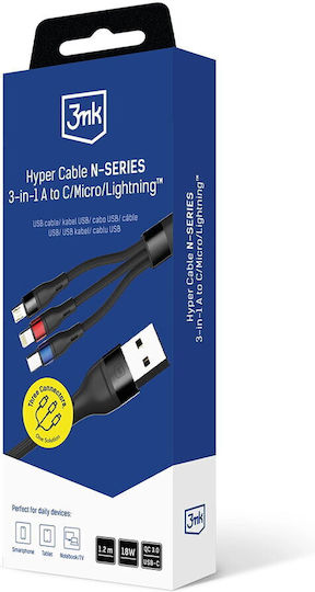 3MK USB to Lightning / Type-C / micro USB Cable Μαύρο 1.2m