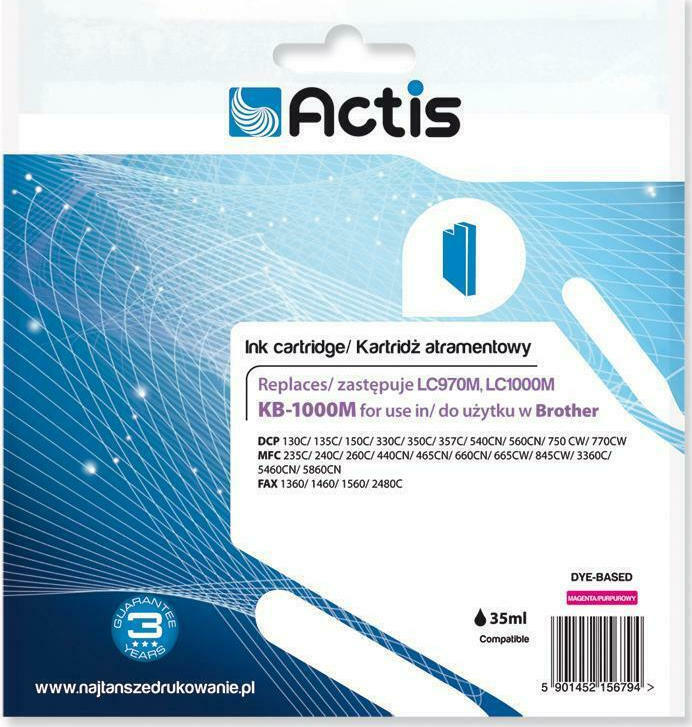 Actis Συμβατό Μελάνι Εκτυπωτή InkJet Brother LC1000M 36ml Ματζέντα
