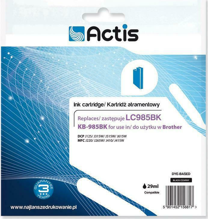Actis Συμβατό Μελάνι Εκτυπωτή InkJet Brother LC985BK 28.5ml Μαύρο