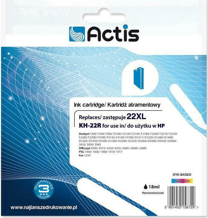 Actis Συμβατό Μελάνι Εκτυπωτή InkJet HP 22XL C9352A 18ml Πολλαπλό (Color)
