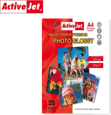 Active Jet Premium Photo Glossy Φωτογραφικό Χαρτί A4 (21×30) 230gr/m² για Εκτυπωτές Inkjet 20 Φύλλα