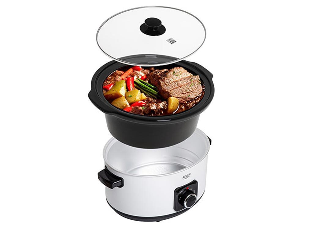 Η φυσική του πρώτη ύλη δεν αλλάζει τη γεύση των πιάτων και εγγυάται την ομοιόμορφη κατανομή της θερμότητας και τη μακροχρόνια διατήρησή της στο πιάτο. Αν και η συσκευή είναι ζεστή κατά τη λειτουργία, η μη θερμαντική λαβή επιτρέπει την άνετη χρήση. Το γυάλινο καπάκι είναι κατασκευασμένο από ασφαλές γυαλί, διευκολύνει την επίβλεψη της διαδικασίας μαγειρέματος χωρίς να ανοίξετε το μπολ. Η χωρητικότητα του μπολ 5.8 λίτρα σας επιτρέπει να προετοιμάσετε φαγητό για μια μεγάλη οικογένεια ή για 2 ημέρες. Η συσκευή διαθέτει 3 επίπεδα θερμοκρασίας μαγειρέματος : χαμηλή, μεσαία και υψηλή, τα οποία μπορείτε να προσαρμόσετε στον τύπο του φαγητού που μαγειρεύετε.
