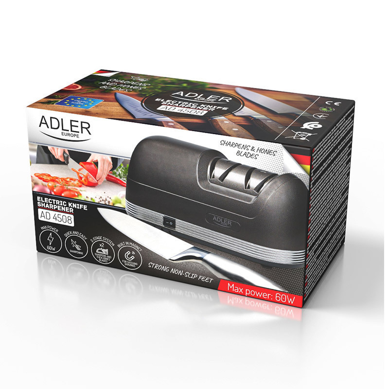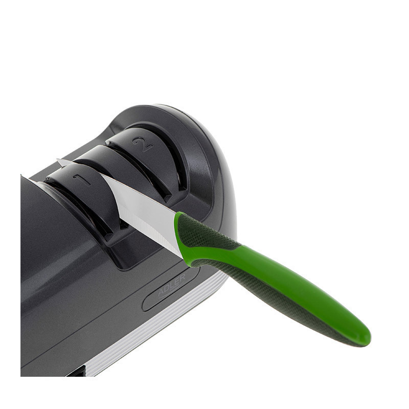 Το ηλεκτρικό ακονιστήρι μαχαιριών από την εταιρία Adler θα επαναφέρει τα μαχαίρια σας στην τέλεια ευκρίνεια μέσα σε λίγα δευτερόλεπτα. Είναι ένα εργαλείο που εξασφαλίζει ότι τα μαχαίρια παραμένουν αιχμηρά για μεγαλύτερο χρονικό διάστημα. Η διαδικασία ακονίσματος δεν απαιτεί εξειδικευμένες γνώσεις ή δεξιότητες, καθιστώντας την ιδανική για κάθε χρήστη. Ένας κινητήρας 60 W παρέχει αρκετή ισχύ για γρήγορο και αποτελεσματικό ακόνισμα.