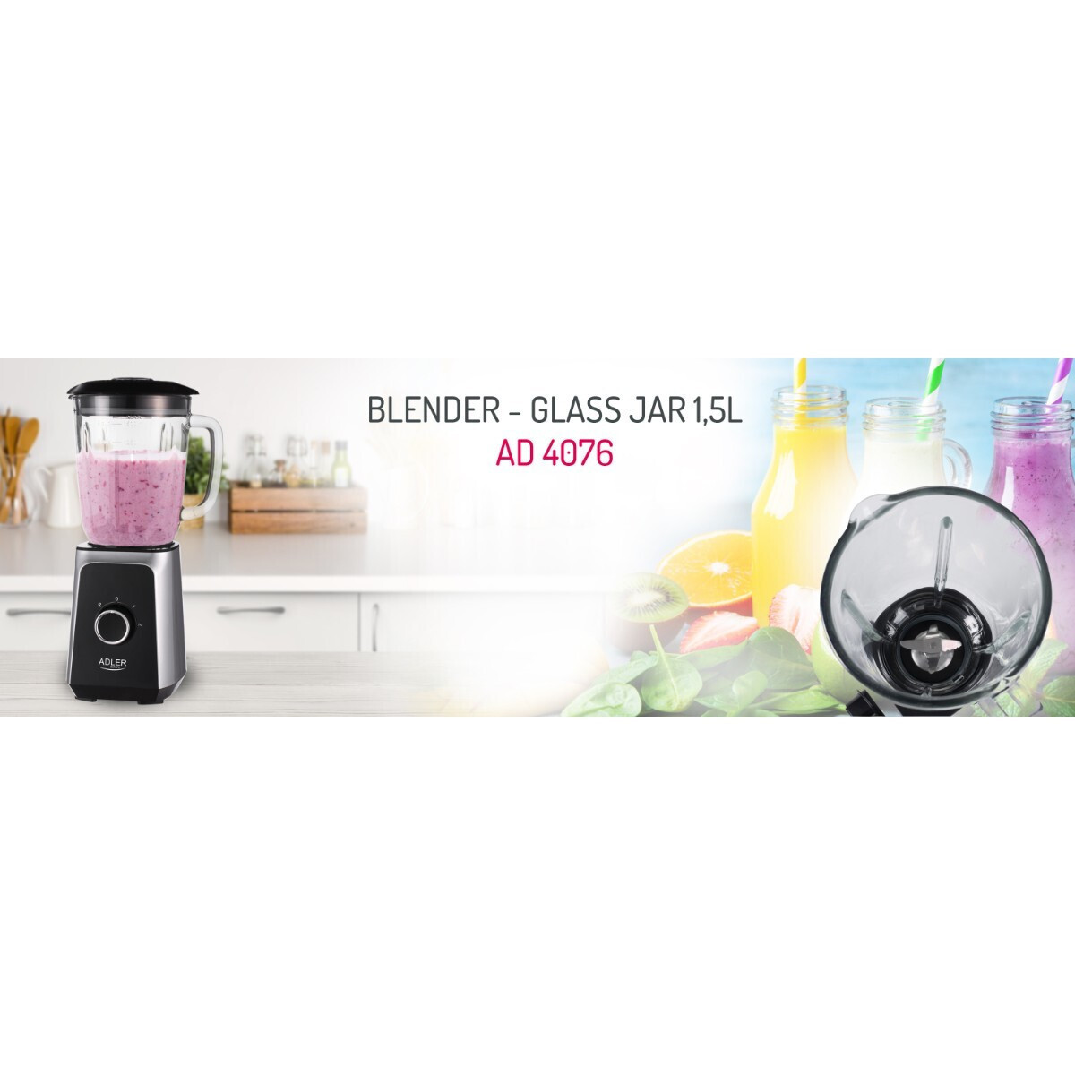 Είναι εξοπλισμένο με γυάλινη κανάτα 1.5 Lt, λεπίδες από ανοξείδωτο ατσάλι και κλειδαριά ασφαλείας.