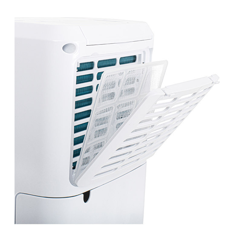 Ο αφυγραντήρας, είναι εξοπλισμένος με έναν ακριβή αισθητήρα που υποδεικνύει το τρέχον επίπεδο υγρασίας στο δωμάτιο. Αφού στεγνώσει το δωμάτιο στο αναμενόμενο επίπεδο υγρασίας, η συσκευή απενεργοποιεί αυτόματα τον συμπιεστή, διασφαλίζοντας την κυκλοφορία του αέρα μέσω του ανεμιστήρα λειτουργίας. Η δεξαμενή νερού έχει χωρητικότητα 2 Lt και όταν γεμίσει, σηματοδοτείται από ένα φωτεινό και ηχητικό σήμα. Ο αφυγραντήρας διαθέτει χρονοδιακόπτη από 1 έως 24 ώρες με λειτουργία καθυστερημένης εκκίνησης.