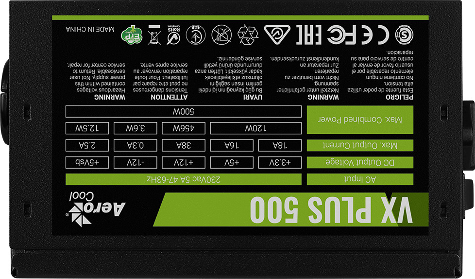 Aerocool PGS VX Plus 500W Μαύρο Τροφοδοτικό Υπολογιστή Full Wired