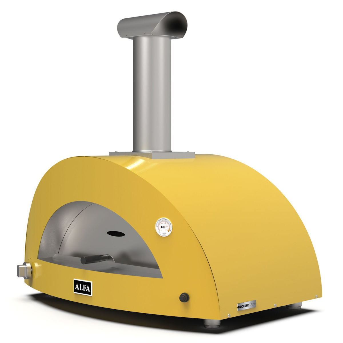 Ο φούρνος πίτσας Alfa Forni Moderno 3 Pizze Hybrid σε χρώμα Fire Yellow είναι ένας ευρύχωρος επαγγελματικός φούρνος από τη σειρά Moderno, κατασκευασμένος στην Ιταλία. Μπορεί να λειτουργήσει με ξύλο ή αέριο, προσφέροντας τη δυνατότητα μετατροπής σε υβριδικό φούρνο με το κιτ που περιλαμβάνεται. Με τον Moderno 3 Pizze, μπορείτε να ψήσετε 3 πίτσες ταυτόχρονα ή διάφορα πιάτα. Είναι ιδανικό μέγεθος για βεράντα ή κήπο, προσφέροντας τη δυνατότητα να δημιουργήσετε πίτσες στο σπίτι που είναι εξίσου καλές με αυτές του αγαπημένου σας εστιατορίου. Ο πρώτος χρόνος ψησίματος σας είναι μόλις 30 λεπτά. Χάρη στην καινοτόμο τεχνολογία Heat Genius, η θερμότητα διαχέεται ομοιόμορφα για τέλεια αποτελέσματα ψησίματος.
