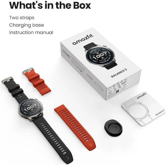 Amazfit Balance 2 47mm Αδιάβροχο Smartwatch με Παλμογράφο (Μαύρο)