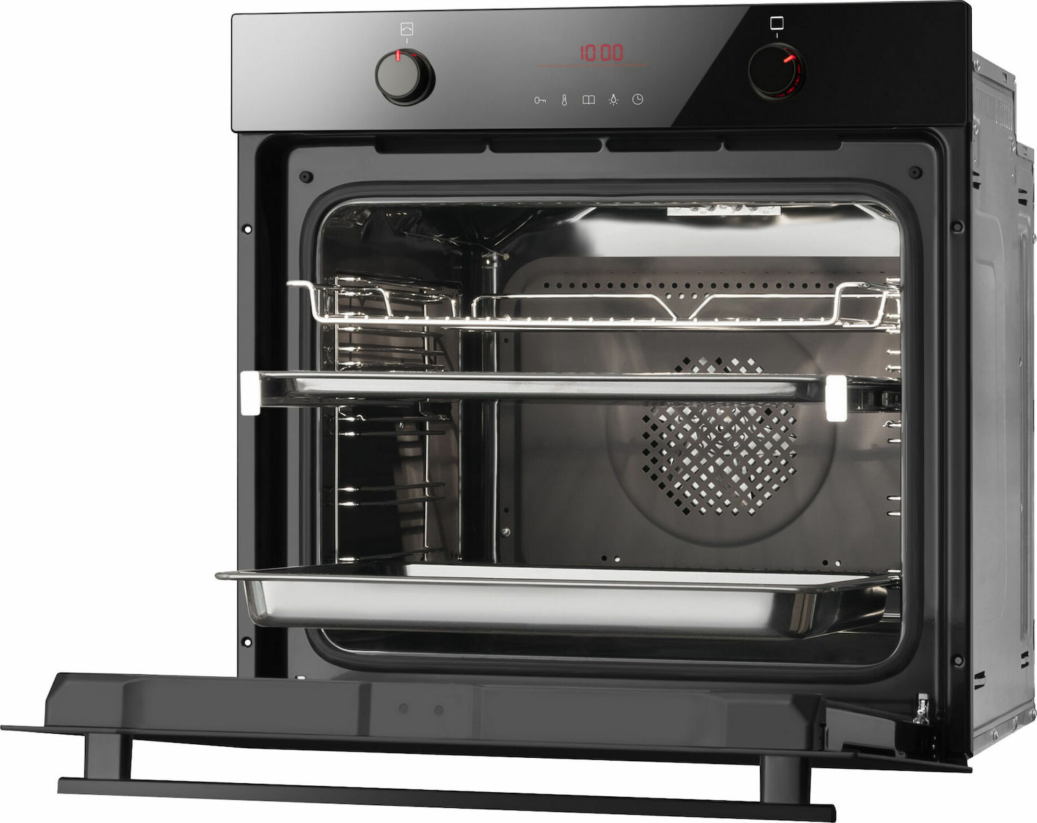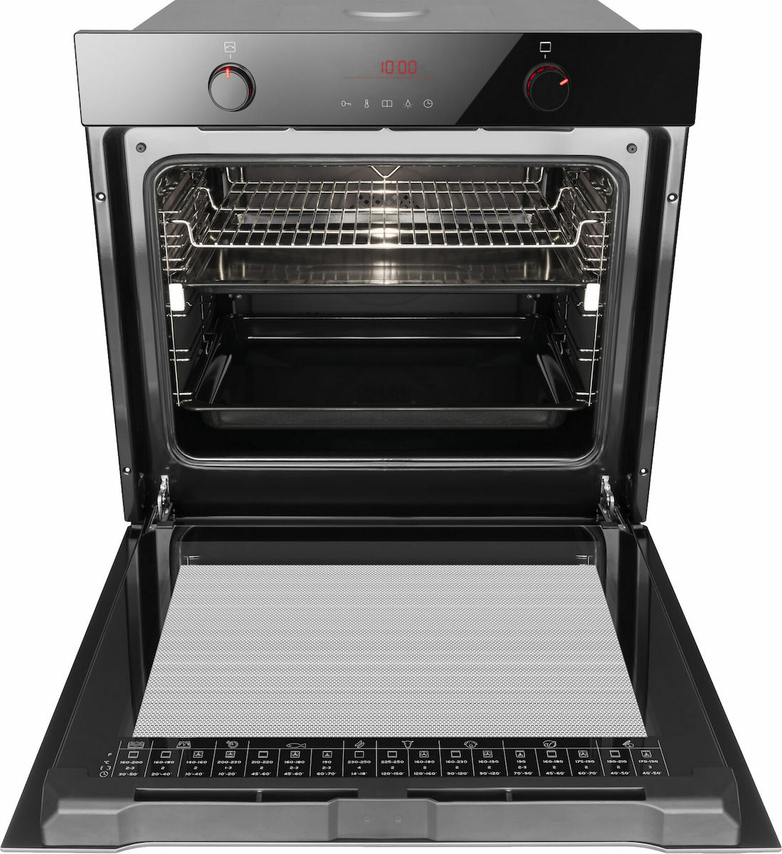 Ο φούρνος διαθέτει σύστημα καθαρισμού μέσω κατάλυσης, το οποίο διευκολύνει τη συντήρησή του. Ο τηλεσκοπικός μηχανισμός κάνει την αφαίρεση και τοποθέτηση των σχαρών απλή και ασφαλή. Οι βυθιζόμενοι διακόπτες προσθέτουν στην κομψότητα του σχεδιασμού, κανονίζοντας την εμφάνιση του φούρνου με άνεση και στυλ.