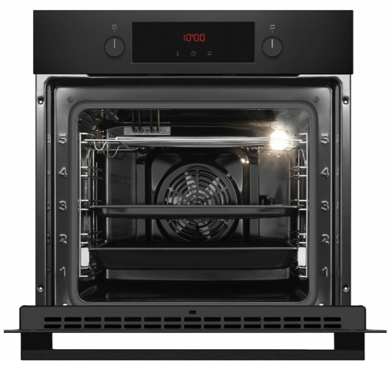 Η κυκλοφορία αέρα μέσα στον θάλαμο εξασφαλίζει ότι όλα ψήνονται ομοιόμορφα – ούτε ωμά κέντρα, ούτε καμένα πλαϊνά. Από αφράτα κέικ μέχρι τραγανές πατάτες, όλα βγαίνουν χρυσαφένια και λαχταριστά. Και για λίγη extra έμπνευση; Το βιβλίο συνταγών στην πόρτα είναι πάντα εκεί για ιδέες.