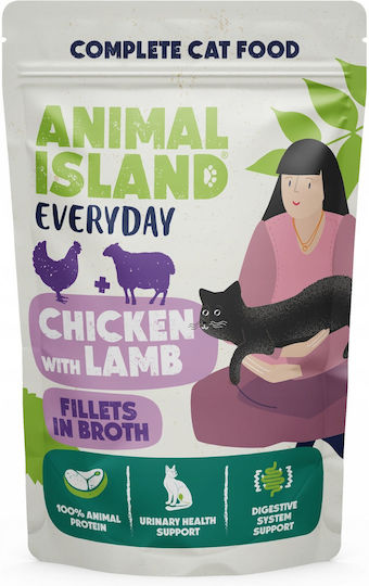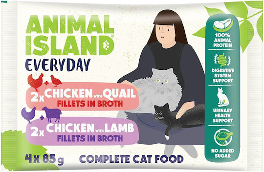Animal Island Υγρή Τροφή για Γάτες σε Φακελάκι με Κοτόπουλο, Ορτύκι και Αρνί 4x85gr