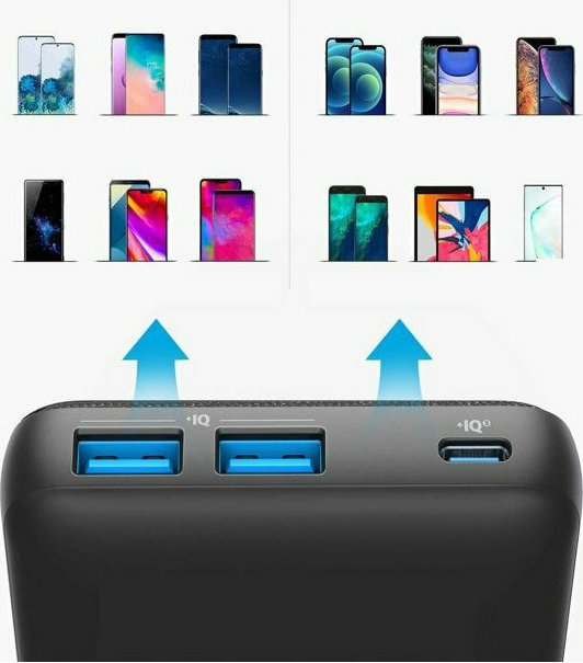 Διαθέτει δύο θύρες USB-A και μία θύρα USB-C όπου μπορείτε να φορτίσετε τις συσκευές σας. H θύρα USB-C μπορεί να χρησιμοποιηθεί και για γρήγορη επαναφόρτιση του power bank.