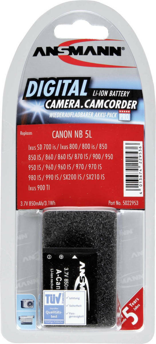 Ansmann Μπαταρία Φωτογραφικής Μηχανής A-Can NB 5 L Ιόντων-Λιθίου (Li-ion) 850mAh Συμβατή με Canon