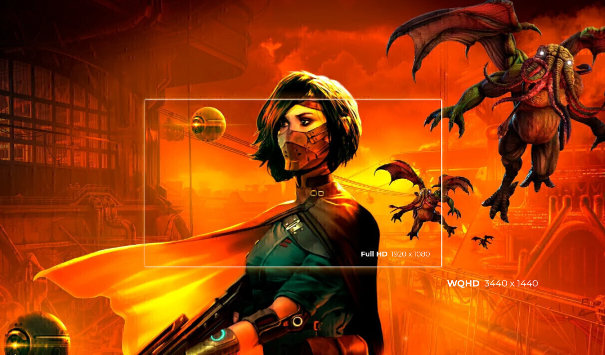 Με ανάλυση 3440 x 1440 Wide Quad HD (WQHD), προσφέρει ανώτερη ποιότητα εικόνας και καθαρές εικόνες που αποκαλύπτουν κάθε λεπτομέρεια.