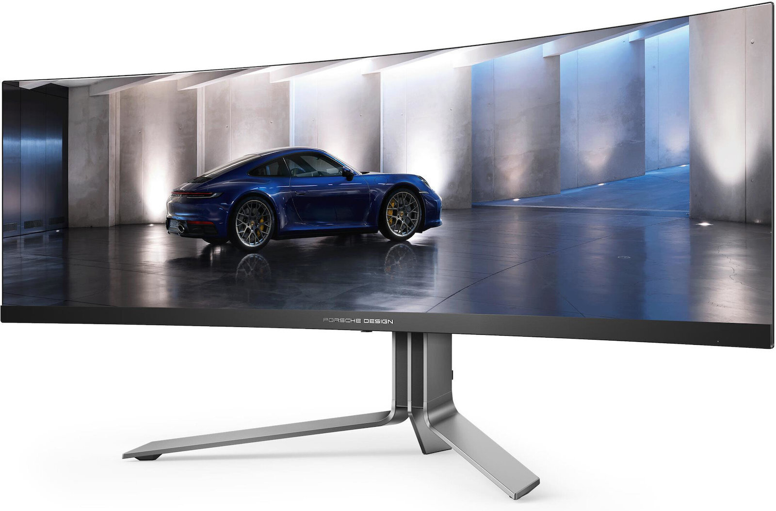 Με ένα εξαιρετικά στενό 5 mm, η οθόνη του PD49 ξεχωρίζει στον κόσμο των οθονών και βαθμολογείται με την ελαφριά εμφάνιση και αίσθηση παρά την εντυπωσιακή αναλογία διαστάσεων 32:9. Η βάση αλουμινίου, εμπνευσμένη από τα τιμόνια της Porsche, προσφέρει επίσης βέλτιστη υποστήριξη για την περιστρεφόμενη και ανακλινόμενη οθόνη – ιδανική για μεγαλύτερες περιόδους παιχνιδιού.