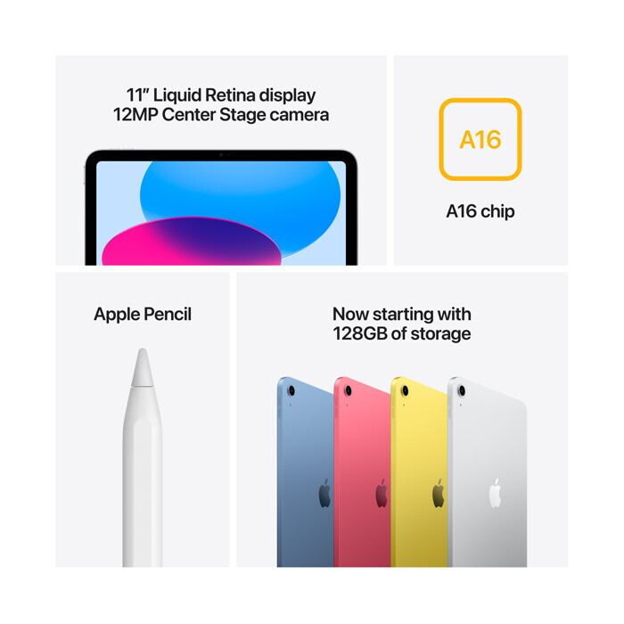 Το iPad 11 ιντσών είναι τώρα πιο ικανό από ποτέ με το εξαιρετικά γρήγορο A16 chip, την οθόνη Liquid Retina, προηγμένες κάμερες, ταχύτατο Wi-Fi 6 και 5G, υποδοχή USB-C και τέσσερα ακαταμάχητα χρώματα. Το iPad προσφέρει έναν δυνατό τρόπο για να δημιουργείς, να είσαι συνδεδεμένος και αποτελεσματικός. Όλα αυτά μαζί σε μια εκπληκτικά προσιτή τιμή.