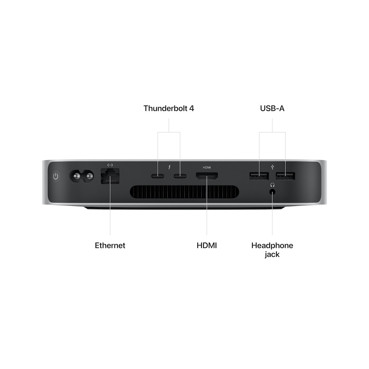 Με δύο ή τέσσερις θύρες Thunderbolt 4, δύο θύρες USB-A, HDMI, Wi-Fi 6E και Gigabit Ethernet, το Mac mini συνδέεται σχεδόν με τα πάντα.9 Και αν θέλεις ακόμα μεγαλύτερες ταχύτητες δικτύωσης, μπορείς να διαμορφώσεις το Mac mini με 10 Gb Ethernet για έως και 10 φορές μεγαλύτερη απόδοση.
