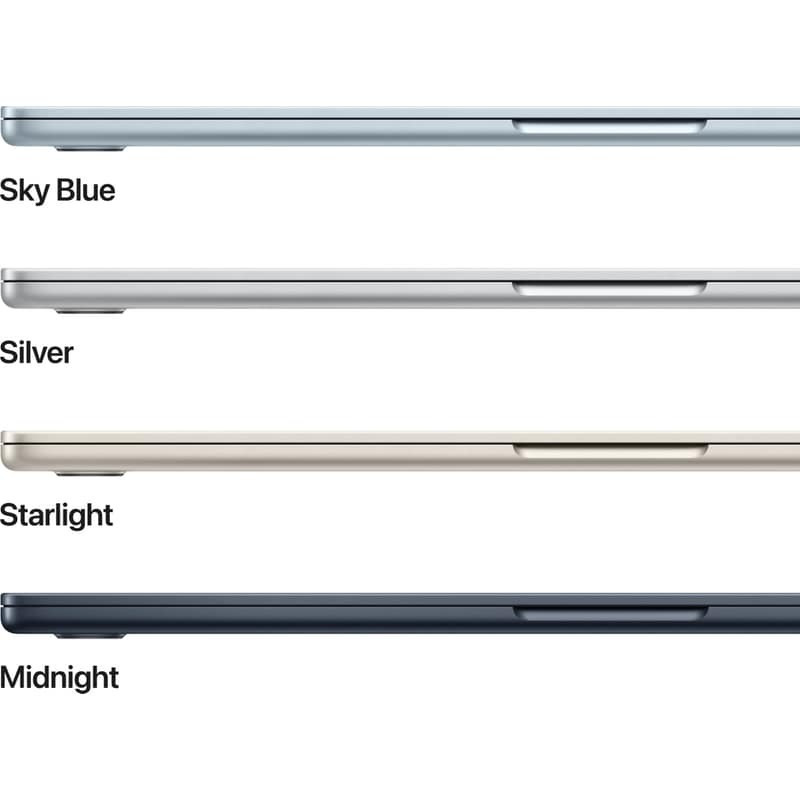 Το MacBook Air διαθέτει δύο θύρες Thunderbolt 4, θύρα φόρτισης MagSafe, υποδοχή ακουστικών, Wi-Fi 6E και Bluetooth 5.3.3 Και υποστηρίζει έως και δύο εξωτερικές οθόνες.