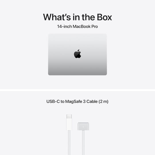 Το MacBook Pro διαθέτει τρεις θύρες Thunderbolt 4, θύρα φόρτισης MagSafe 3, υποδοχή κάρτας SDXC, θύρα HDMI και υποδοχή ακουστικών. Και υποστηρίζει έως και δύο εξωτερικές οθόνες.