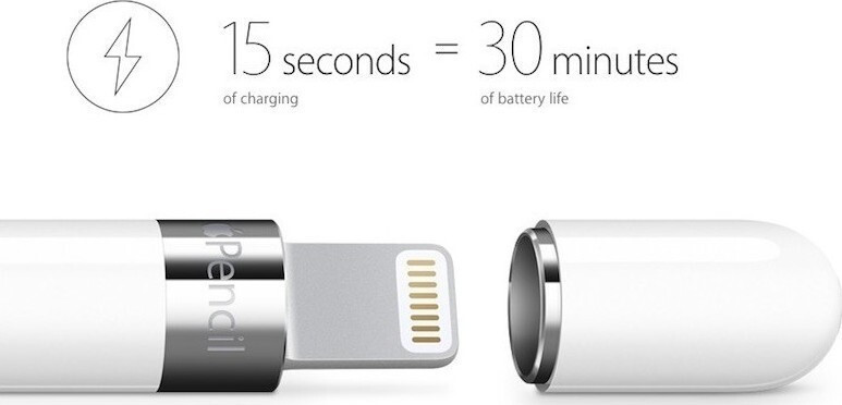Αφαίρεσε το μαγνητικό καπάκι του Apple Pencil για να αποκαλύψεις μια υποδοχή Lightning που σου επιτρέπει να φορτίζεις το Apple Pencil πανεύκολα συνδέοντάς το στο iPad Pro. Η υποδοχή είναι ελαφρώς πιο μακριά σε μήκος, ώστε να επιτρέπει τη φόρτιση ακόμα και όταν το iPad Pro βρίσκεται σε θήκη από σιλικόνη. Με την πλήρη φόρτιση μπορείς να σημειώνεις, να σχεδιάζεις, να σχολιάζεις και να διορθώνεις το περιεχόμενό σου για 12 ώρες.1 Και αν η μπαταρία εξαντληθεί ενώ χρησιμοποιείς το Apple Pencil, μπορείς απλώς να το φορτίσεις από το iPad Pro για 15 δευτερόλεπτα και να εξασφαλίσεις 30 λεπτά χρήσης.