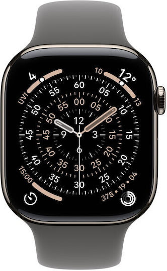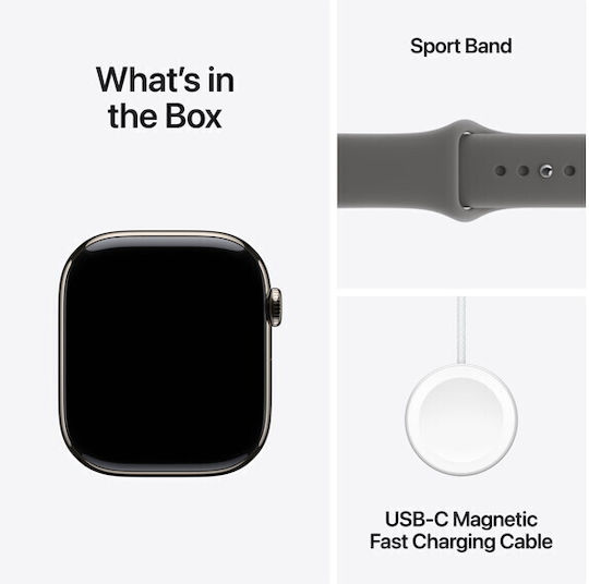 Apple Watch Series 11 Cellular Titanium 46mm Αδιάβροχο με eSIM και Παλμογράφο (Natural Titanium Case with Stone Grey Sport Band – S/M)