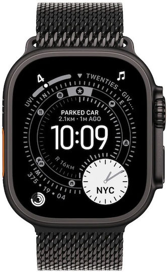 Apple Watch Ultra 3 Titanium 49mm Αδιάβροχο με eSIM και Παλμογράφο (Black Titanium Case with Black Titanium Milanese Loop – Large)