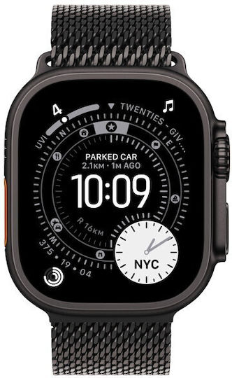 Apple Watch Ultra 3 Titanium 49mm Αδιάβροχο με eSIM και Παλμογράφο (Black Titanium Case with Black Titanium Milanese Loop – Medium)