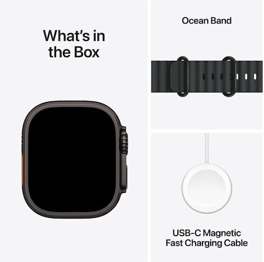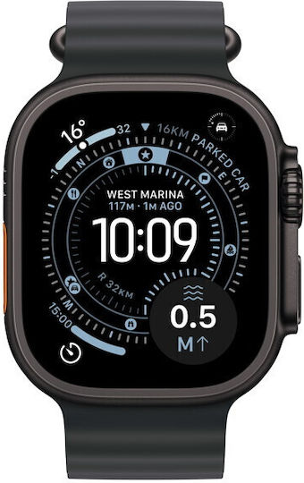 Apple Watch Ultra 3 Titanium 49mm Αδιάβροχο με eSIM και Παλμογράφο (Black Titanium Case with Black Ocean Band)