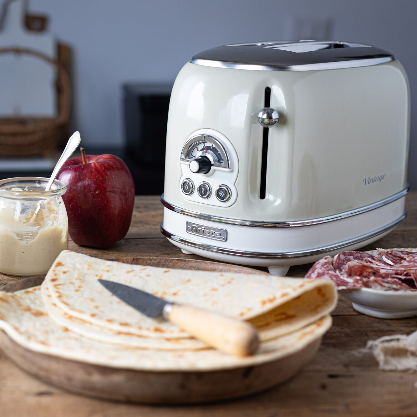 Ο Vintage σχεδιασμός, με απαλές, ρετρό γραμμές και παστέλ χρώματα, κάνει τη φρυγανιέρα Vintage μια συσκευή για να επιπλώσετε την κουζίνα σας με ένα shabby chic στυλ.