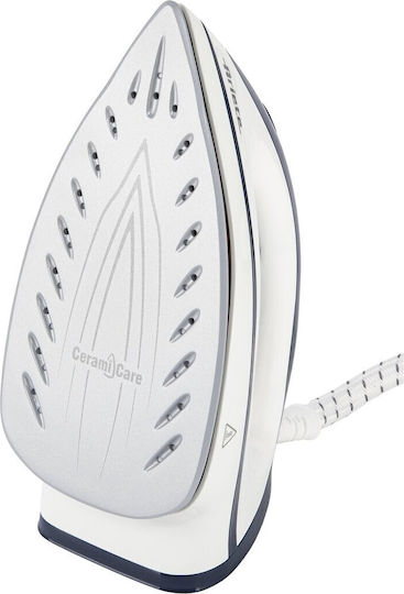 Με τη δυνατότητα παραγωγής ατμού 120 γραμμαρίων ανά λεπτό, ο ατμός εισχωρεί βαθιά στις ίνες και αφαιρεί τις ζάρες αποτελεσματικά, μειώνοντας το χρόνο σιδερώματος. Επίσης, η λειτουργία βολής ατμού προσφέρει ένα τηλεχειριζόμενο επιπλέον 120 γραμμάρια ατμού, ιδανικό για τις πιο επίμονες τσακίσεις. Διαθέτει κεραμική πλάκα που γλιστρά ομαλά χωρίς να κολλά στα υφάσματα, ενώ η δυνατότητα κάθετου ατμού σας επιτρέπει να εργάζεστε εύκολα με κουρτίνες ή ρούχα σε κρεμάστρες. Δεν παρέχεται λειτουργία καθαρισμού αλάτων.