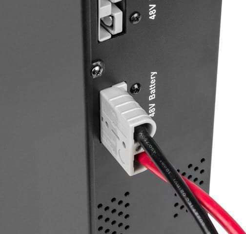 Η σύνδεση του module με την έκτακτη τροφοδοσία γίνεται σε λίγα δευτερόλεπτα. Στο πίσω μέρος της UPS υπάρχουν δύο υποδοχές για πακέτα μπαταρίας: μία για σύνδεση με την τροφοδοσία και η άλλη για το επόμενο module του πακέτου μπαταρίας.