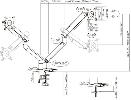 Ο βραχίονας της βάσης έχει ικανότητα να υποστηρίζει μέγιστο φορτίο έως 9 κιλά, διασφαλίζοντας τη σταθερότητα και την ασφάλεια των οθονών σας. Έχει σχεδιαστεί σύμφωνα με το πρότυπο Vesa 75 x 75, επιτρέποντας εύκολη τοποθέτηση και αφαίρεση των οθονών.