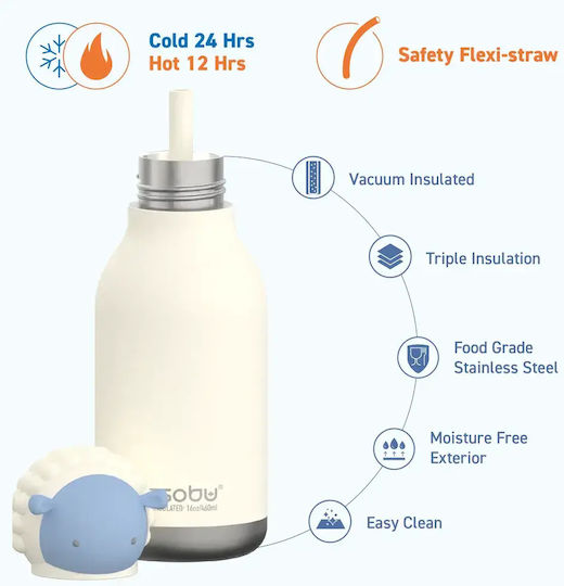 Asobu Παιδικό Παγούρι Θερμός Ανοξείδωτο με Καλαμάκι Sheep SBV44-SHEEP