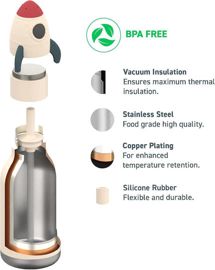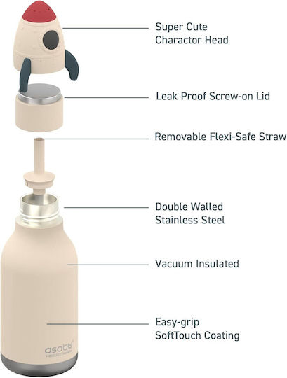 Asobu Παιδικό Παγούρι Θερμός Ανοξείδωτο με Καλαμάκι Bestie Rocket 460ml