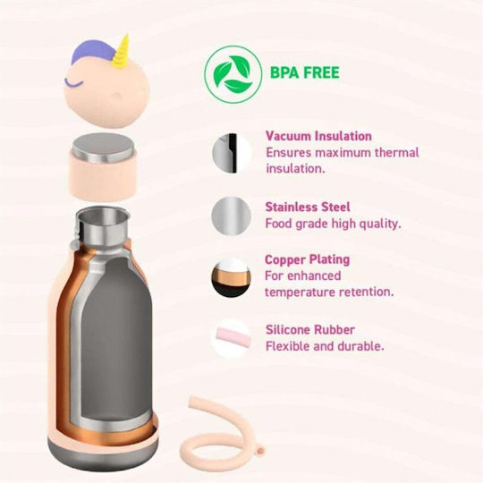 Asobu Παιδικό Παγούρι Θερμός Μονόκερος Ανοξείδωτο με Καλαμάκι Ροζ 460ml 05454