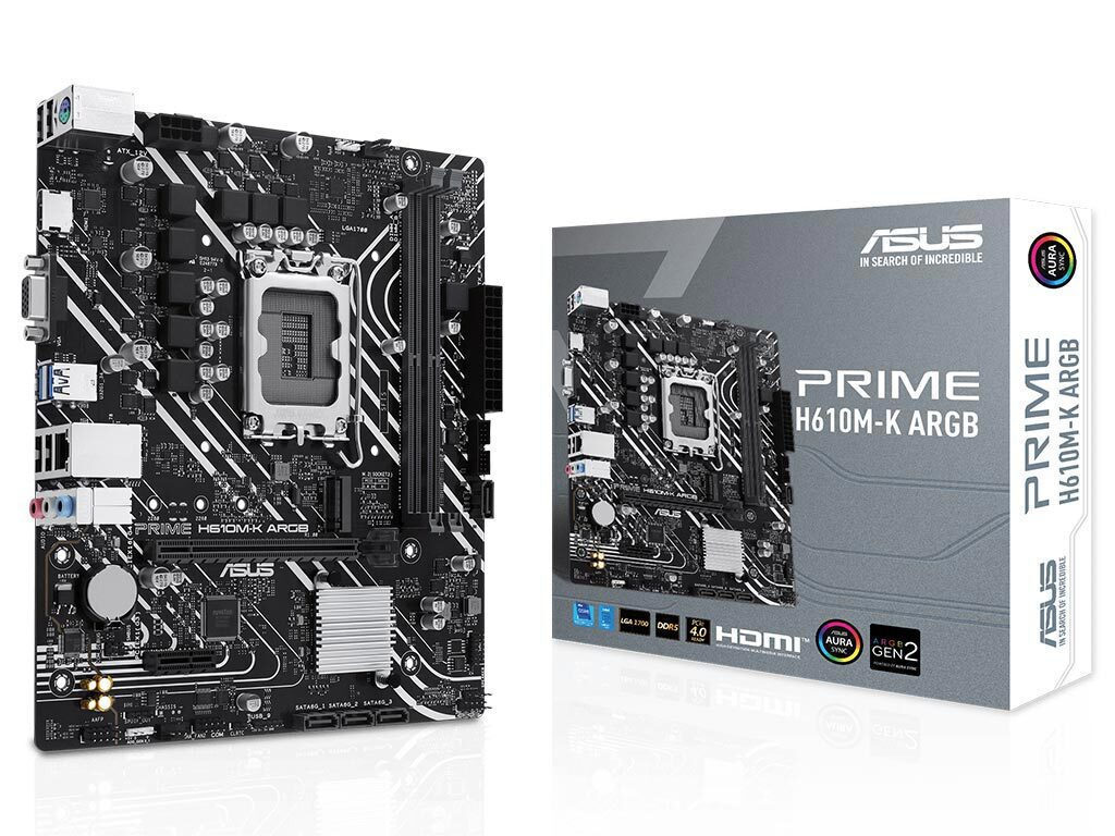 Η μητρική κάρτα Asus Prime H610M-K ARGB απευθύνεται σε χρήστες που επιθυμούν να χτίσουν έναν υπολογιστή με βάση την πλατφόρμα του Intel 12th Gen Core (Alder Lake) και 13th Gen Core (Raptor Lake) με socket LGA 1700. Αυτή η μητρική κάρτα υποστηρίζει τους επεξεργαστές της σειράς Intel 12th Gen Core και 13th Gen Core, όπως τους i9, i7, i5 και i3, καθιστώντας την κατάλληλη για gaming, εργασίες παραγωγικότητας και γενική χρήση.