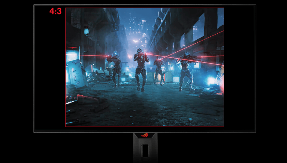 Για τους παίκτες που χρησιμοποιούν συνήθως μικρότερες οθόνες, η XG27AQDMG μπορεί να προβάλει εικόνα 24,5 ιντσών, εικόνα με αναλογία διαστάσεων 4:3 ή εικόνα πλήρους οθόνης με αναλογία διαστάσεων 4:3 με βαθιά μαύρα περιγράμματα OLED γύρω από την εικόνα. Για τους παίκτες FPS, το παιχνίδι σε αναλογία διαστάσεων 4:3 πλήρους οθόνης κάνει τους στόχους ή τα μοντέλα χαρακτήρων να φαίνονται ελαφρώς μεγαλύτερα στο παιχνίδι, καθιστώντας πιο εύκολο το χτύπημα.