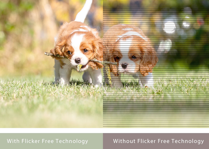 Η ενσωματωμένη τεχνολογία ASUS Flicker Free, πιστοποιημένη από την TÜV Rheinland, μειώνει το τρεμόπαιγμα στην οθόνη για να εξασφαλίσει άνετη προβολή. Αυτή η τεχνολογία βοηθά στην ελαχιστοποίηση των περιπτώσεων καταπόνησης των ματιών που μπορεί να προκύψουν από την πολύωρη παραμονή μπροστά σε μια οθόνη.