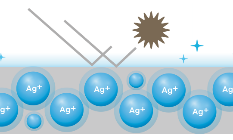 Τα θετικά φορτισμένα ιόντα αργύρου (Ag+) συνδέονται με τα κυτταρικά τοιχώματα αρνητικά φορτισμένων μικροβίων και βακτηρίων, διαταράσσοντας τις εσωτερικές τους λειτουργίες και σκοτώνοντάς τα.