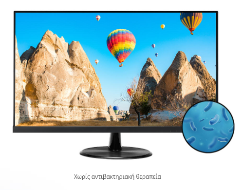 - Η ιδιόκτητη μακράς διάρκειας αντιβακτηριακή θεραπεία αναστέλλει την ανάπτυξη βακτηρίων και μυκήτων στα πλαίσια και τα πλήκτρα πρόσβασης της οθόνης