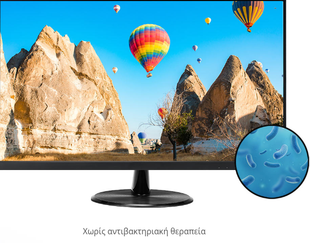 Τα πλαίσια και τα πλήκτρα πρόσβασης στο VY249HGR διαθέτουν αντιβακτηριδιακή επεξεργασία ιοντικού αργύρου. Αποτρέποντας την προσκόλληση βακτηρίων έως και 99,9%, διατηρεί βασικές περιοχές της οθόνης καθαρές και υγιεινές, μειώνοντας ενδεχομένως την εξάπλωση επιβλαβών βακτηρίων.