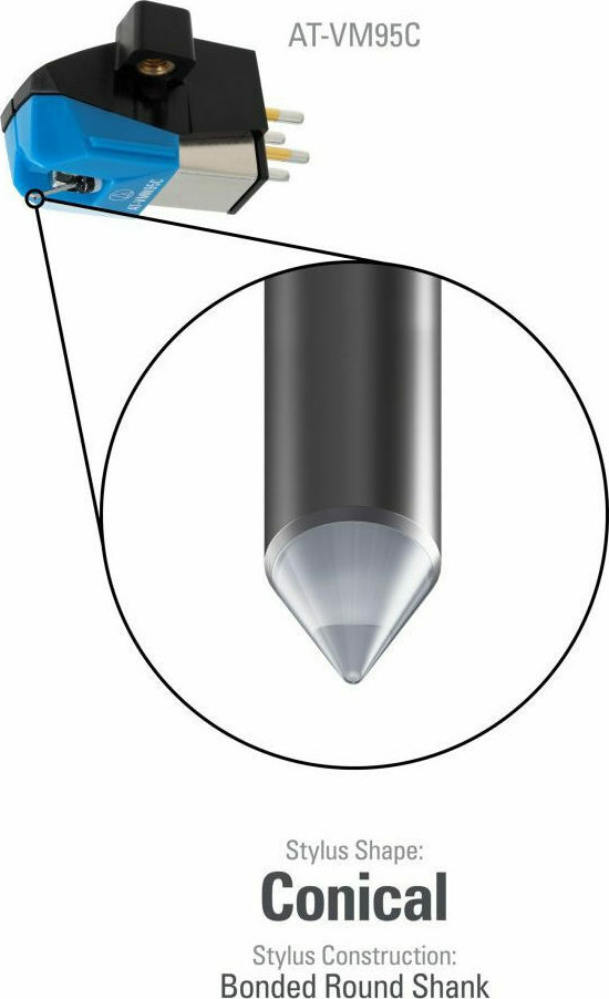 Η AT-VM95C είναι μια κεφαλή “χαμηλού προϋπολογισμού” που διαθέτει μια κωνική βελόνα , διαθέτει βελτιωμένο και ξεχωριστό σχεδιασμό που έχει ως αποτέλεσμα ένα πιο άκαμπτο περίβλημα , και δύο βιδωτά ένθετα στο σώμα της κεφαλής που επιτρέπουν την τοποθέτησή της στο Shell με δύο μόνο βίδες, χωρίς παξιμάδια. Η συμβατότητα της θα επιτρέψει την αναβάθμιση με οποιοδήποτε βελόνα από τις άλλες 4 της σειράς, όπως η Elliptical, η Elliptical Nude, η Microlinear και η Shibata.
