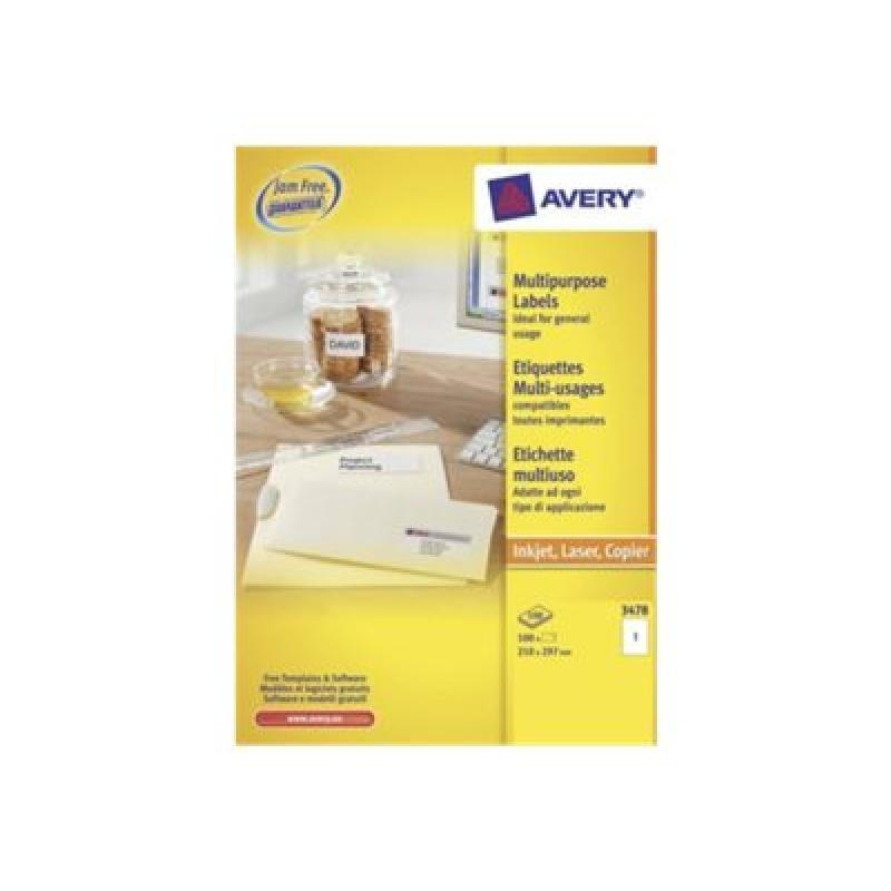 Avery Αυτοκόλλητες Ετικέτες Α4 Ορθογώνιες 210x297mm