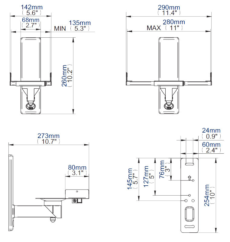 • Εύρος ρύθμισης πλάτους: 135 – 280 mm