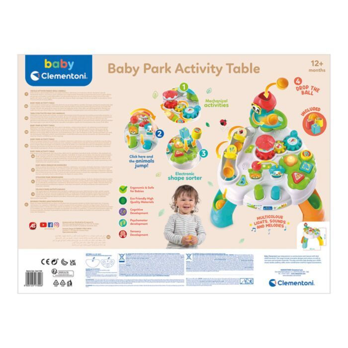 Τα παιχνίδια της σειράς Baby Clementoni βοηθούν τους γονείς να επικοινωνούν και να αλληλεπιδρούν με το μωρό από τις πρώτες ημέρες της ζωής του. Με καινοτόμο σχεδιασμό και χρώματα, μη τοξικά και ανθεκτικά υλικά, καθώς και με ανάγλυφες επιφάνειες και πολλές δραστηριότητες ευνοούν την ανάπτυξη των οπτικών, απτικών και ακουστικών ικανοτήτων, την κινητική δραστηριότητα και τους πρώτους λογικούς συσχετισμούς.