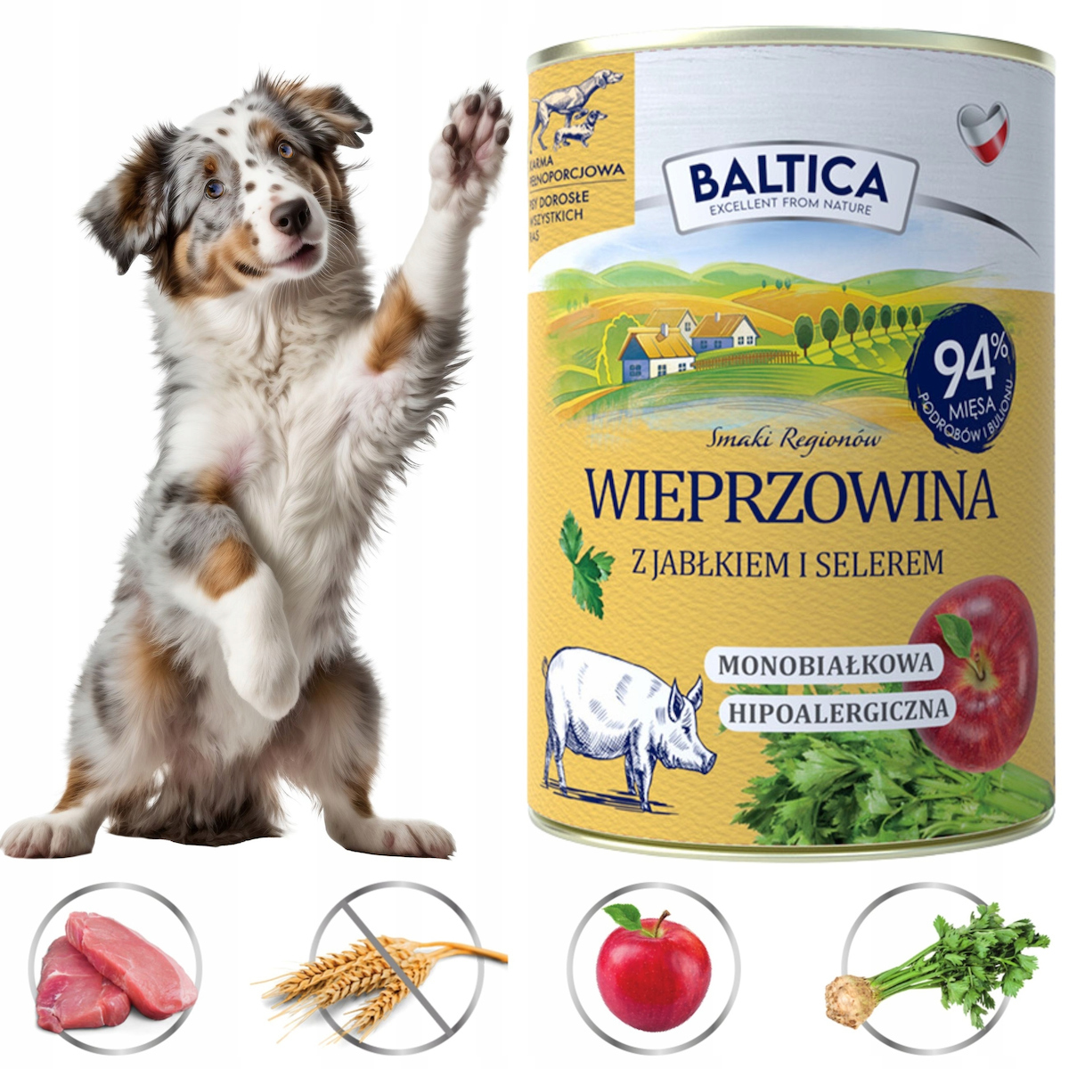 BALTICA Υγρή Τροφή Σκύλων με Χοιρινό και Μήλο, χωρίς σιτηρά, premium, 400g