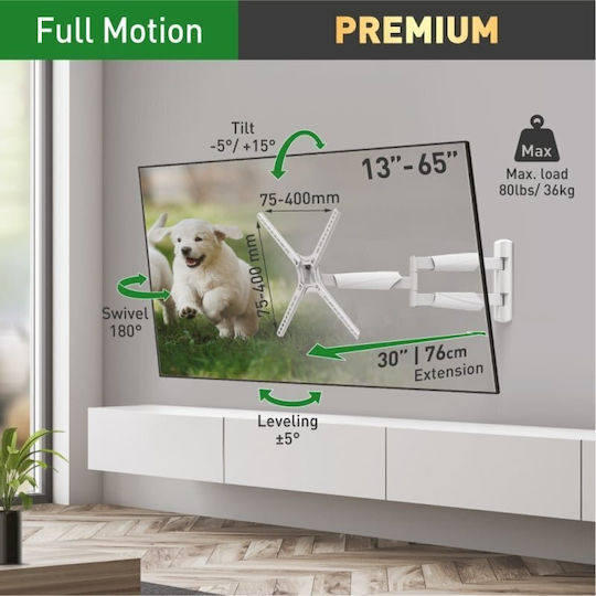 Barkan BM343XLW Βάση Τηλεόρασης Τοίχου με Βραχίονα έως 65″ και 36kg Λευκό