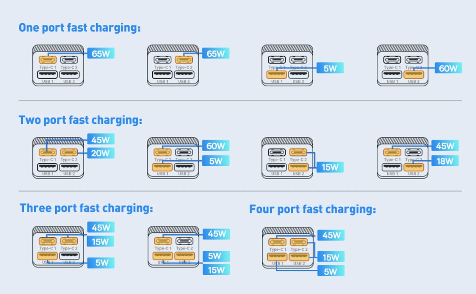 4-σε-1 Multitasking: Δύο (2) θύρες USB-C και δύο (2) θύρες USB-A για να φορτίζεις 4 συσκευές ταυτόχρονα.