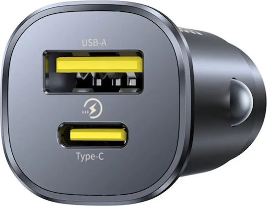 Baseus Φορτιστής Αυτοκινήτου 30W με Θύρες: 1xUSB 1xType-C Μαύρο Χρώμα C00072300123-00